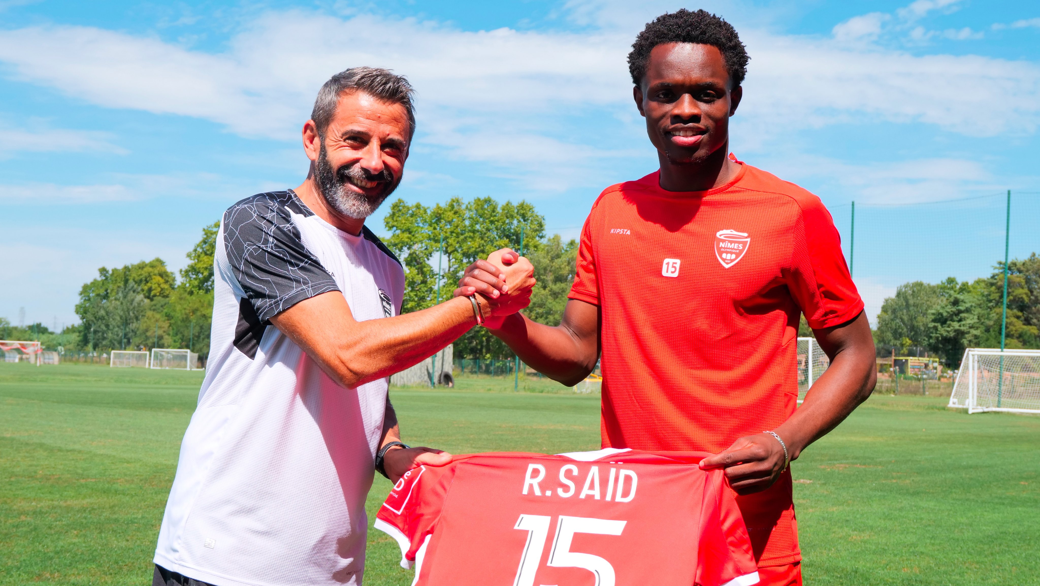 Nicolas Usaï et le nouvel attaquant Rafiki Saïd. 12 recrues (dont Pablo Pagis et Rafiki Saïd) pour 11 départs pour cet intersaison chez les Crocos du Nîmes olympique qui évoluent encore en Ligue 2. « Ce sont deux profils différents. Rafiki est plus dans la vitesse et la percussion alors que Pablo est un joueur de remise qui peut tourner autour de l’attaquant, très juste techniquement. Ils sont jeunes et vont amener de l’insouciance », se réjouissait alors Nicolas Usaï (Photo Nîmes Olympique).