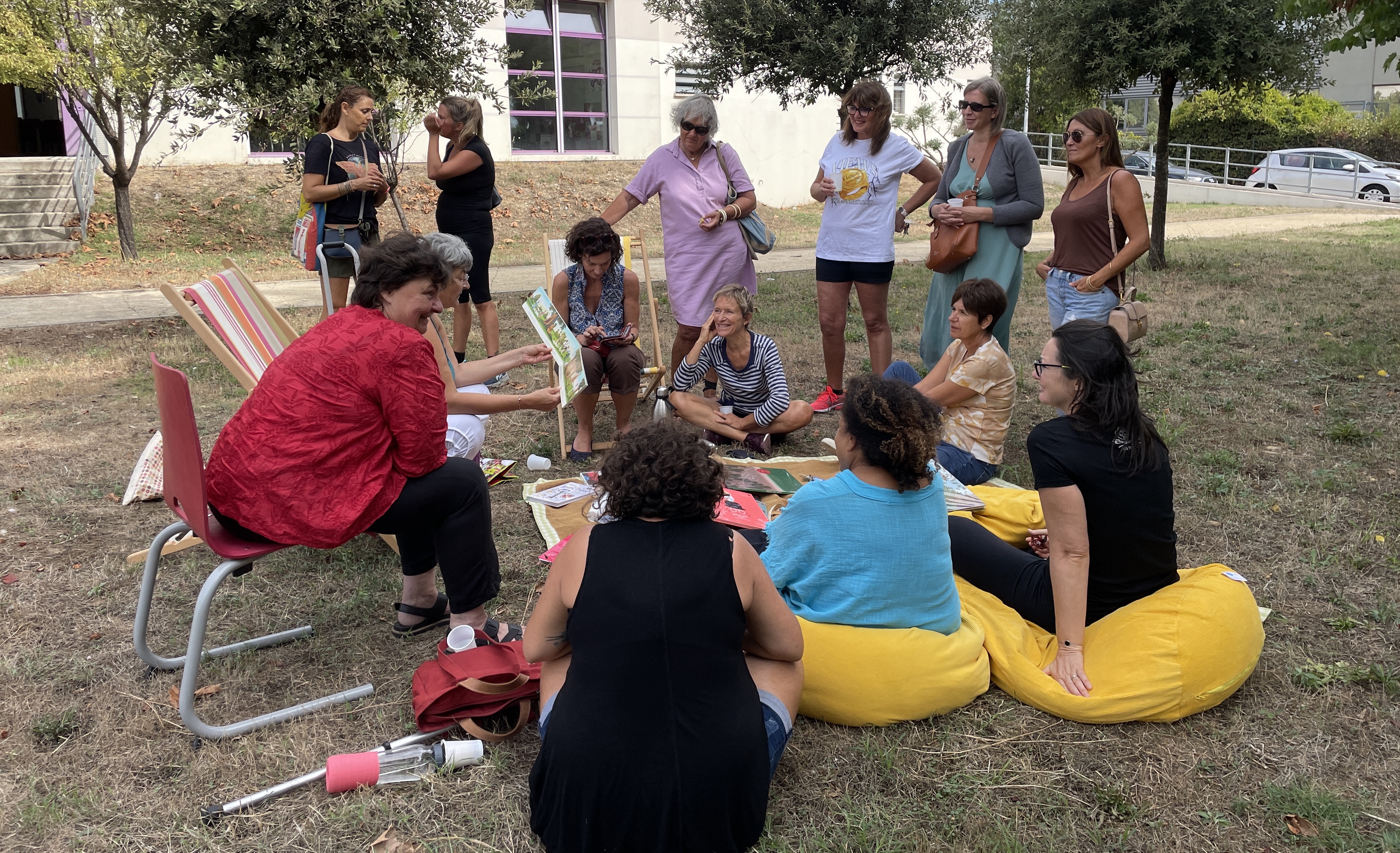 Moment de lecture et de rire au collège Les Oliviers à Nîmes durant la prérentrée organisée par le principal Mohamed Bouta. Après deux heures de pétanque, molkky, badminton ou tennis de table, le corps enseignant et les autres personnels du collège ont pu partager un repas tiré du sac en écoutant un concert d'Akaxe. L'après-midi était consacré au travail et à la préparation de la rentrée scolaire. L'article est à consulter ici (Photo Anthony Maurin).