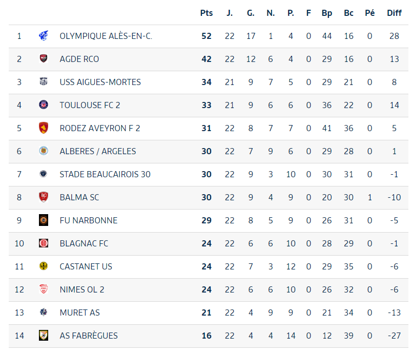 Après le carton plein du week-end dernier, les clubs gardois ont été davantage à la peine lors de cette 22e journée. Alès n’a pas pu valider sa montée en N2 et, dans la course au maintien, la réserve du Nîmes Olympique a perdu deux précieux points à domicile. Seul Beaucaire s’est imposé en attendant le résultat d’Aigues-Mortes qui se déplace à Toulouse cet après-midi.