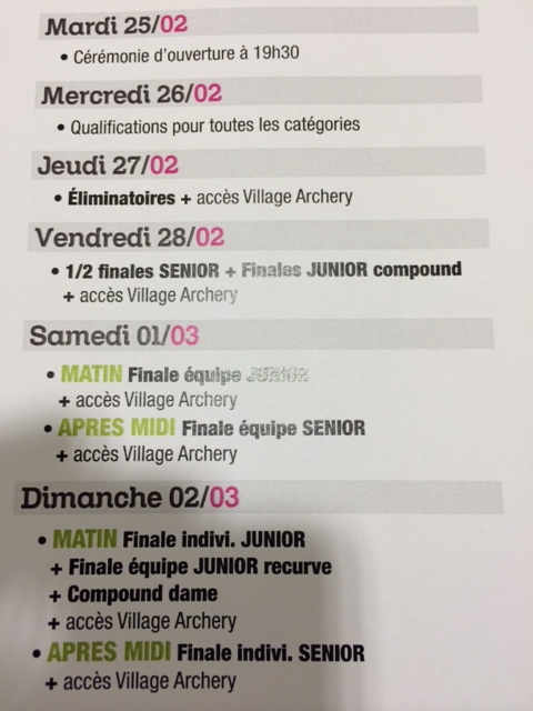 Le prix des places varie de 3€ à 30€. La cérémonie d’ouverture, le mardi 25 février à 19h30, est à 3€. Pour les éliminatoires du jeudi 27 : 8€. ½ finales Senior du vendredi : 12€. Finale équipe junior samedi matin 12€/20€ et finale équipe senior du samedi après-midi 17€/30€. Finale individuelle junior dimanche matin 12€/20€ et finale individuelle senior du dimanche après-midi 17€/30€.