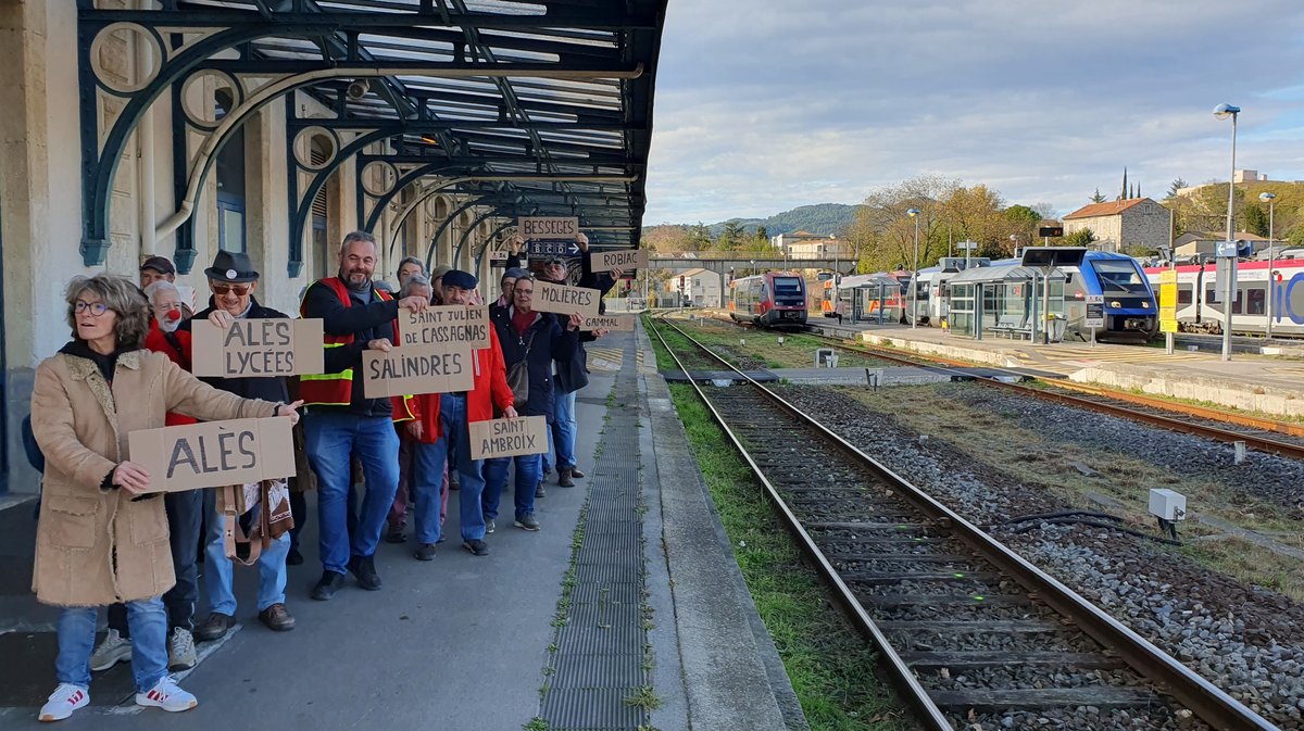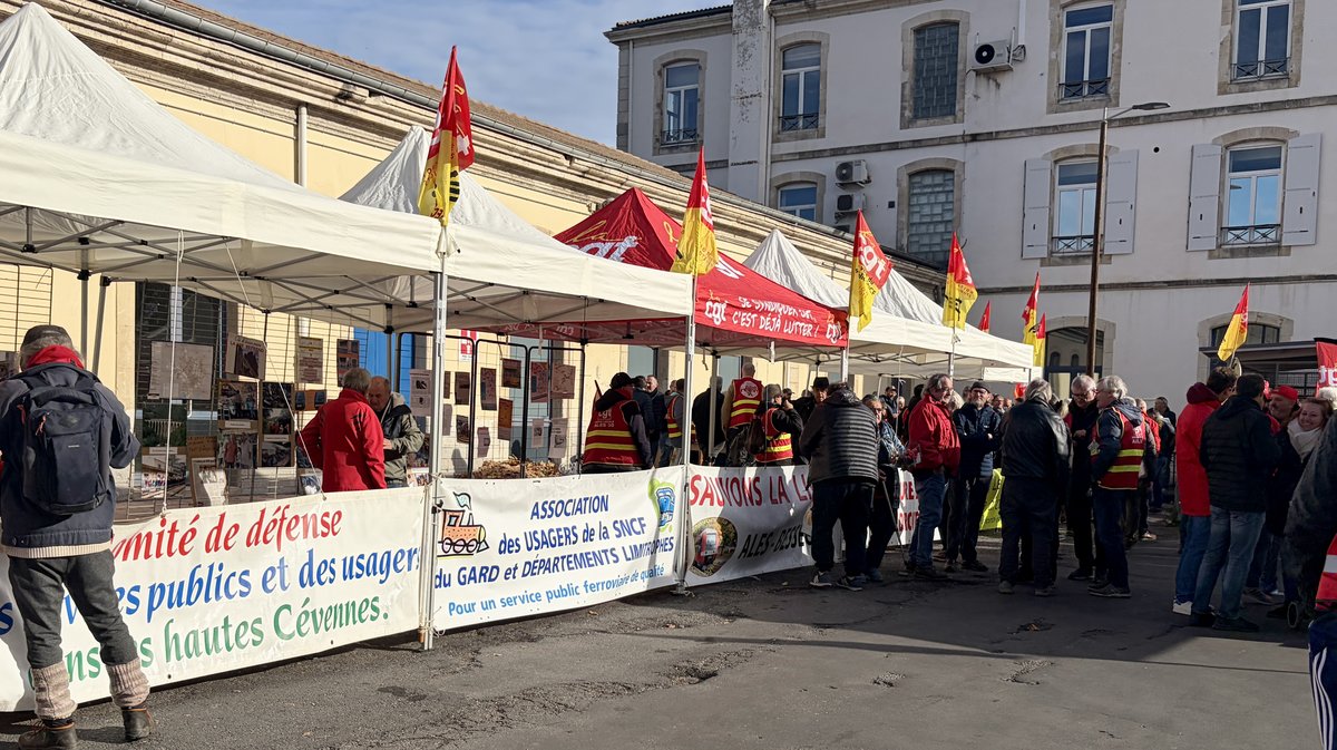 Un peu plus de 300 personnes ont assuré l'ambiance et informé les curieux, sur le parvis de la gare d'Alès. "On veut démontrer que les réouvertures reposent sur la demande de la population. Mais on se mobilise aussi pour que les gares soient réhumanisées, la réouverture de guichets, etc." Pour Cyril Capdevielle, secrétaire fédéral, "c'est un même combat au niveau national, alors que 9 000 km de lignes sont menacées, faute de financements." On ne parle évidemment pas, ici, des lignes TGV mais de celles appelées "de desserte fine du territoire", soit les lignes régionales que SNCF Réseaux tente, selon le syndicat, de transférer aux conseils régionaux.