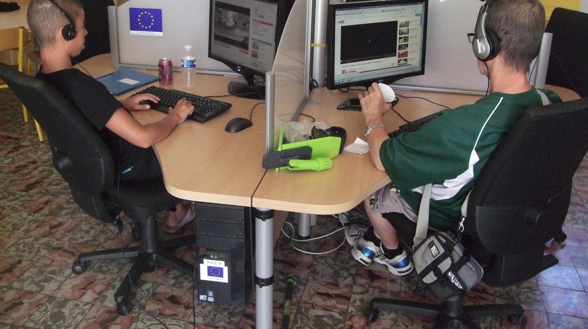 La cyber-base qui a plusieurs cordes à son arc vient d'en ajouter une nouvelle pour cette rentrée avec la mise en place d'un nouveau système d'émulation Windows 7. "Cette nouvelle installation va permettre progressivement de faire évoluer les contenus des ateliers vers de nouvelles applications et offrir ainsi au public plus de possibilités" explique le directeur Frédéric Ricquebourg. La Cyber-base de Rochebelle qui compte aujourd'hui plus de 500 adhérents est ouverte au grand public gratuitement sur simple inscription (1) du lundi au vendredi de 14h00 à 18H00 avec des ateliers multimédias les lundis, mardis, jeudis et vendredis de 15 h00 à 17h00. Le matin elle accueille les scolaires dans le cadre des programmes de l'Ecole de la découverte mis en place avec l'Education Nationale. "Les inscriptions aux ateliers ont lieu les premier lundis de chaque mois sur un programme mensuel" explique Michel Gay qui accueille et forme le public avec Nathalie Canignia et Catherine Bagagli sur les 12 postes (plus 1) de la cyber-base. Au programme de ce mois de septembre : découverte du traitement de texte et du clavier, de l'Internet, de la messagerie et du tableur pour les débutants et organisation et approfondissements, plus retouche photo pour le niveau intermédiaire. "En plus des consulations libres, on peut assister aux ateliers sans y participer ou encore venir "répéter" les ateliers entre deux séances" commente Michel Gay. "Aujourd'hui on nous demande beaucoup de conseils dans la retouche photo ou le montage vidéo. l'accès aux nouvelles applications sous Windows permettra de travailler sur des logiciels plus proches de ceux dont les gens disposent chez eux." Mais la demande est très large poursuit-il, "il y a même des gens qui viennent ici avant d'acheter leur matériel pour mieux comprendre leurs besoins réels". Avec un parking, des sanitaires, un aménagement fonctionnel et spacieux et même l'accès à une imprimante pour des courts documents (CV, lettre de motivation, didacticiel...), tout est fait pour que public se sente à l'aise.