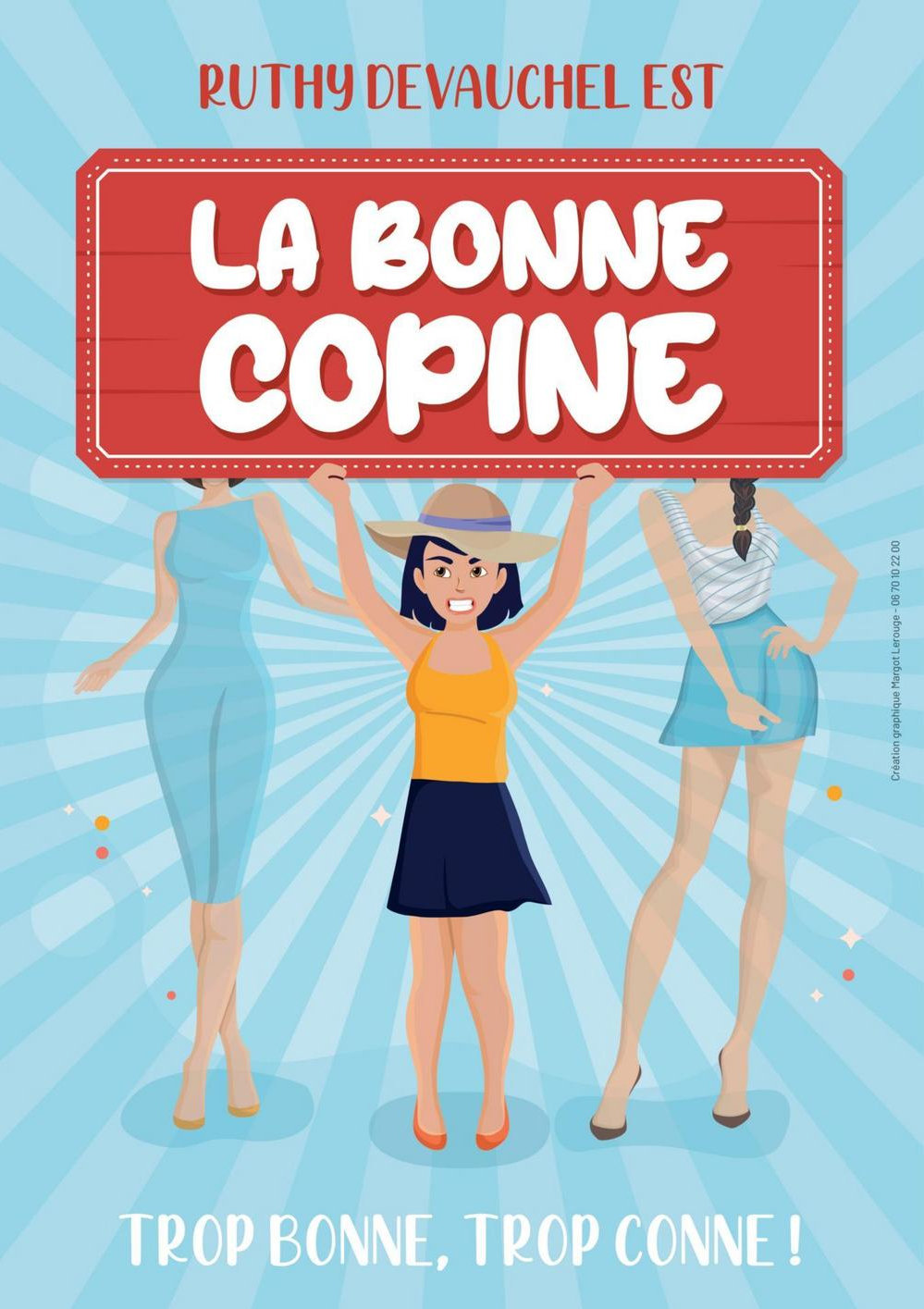 La bonne copine, soit vous en avez une, soit vous en êtes une. La bonne copine te donne tous les bons conseils qu'elle n'a jamais suivis. La bonne copine veille à ce que tu manges, boives et fumes pas trop, en le faisant à ta place. La bonne copine tu peux tout lui dire, tu sais qu'elle te jugera pas parce qu'elle est pire que toi. La bonne copine a une capacité d'écoute supérieure à celle de ton psy et ton chat. La bonne copine c'est ta bouée : tu peux aller à la piscine avec, c'est toi que les hommes regarderont. La bonne copine est une tombe, celle du cadavre de tes exs. La bonne copine sera le témoin de ton mariage et de toutes les autres conneries que tu es susceptible de faire. La bonne copine a des dossiers sur toi, si t'es pas morte de honte, tu seras morte de rire. La bonne copine c'est la revanche de toutes les filles trop ou pas assez. La bonne copine est une spécialiste des enterrements... de vie de jeune fille.