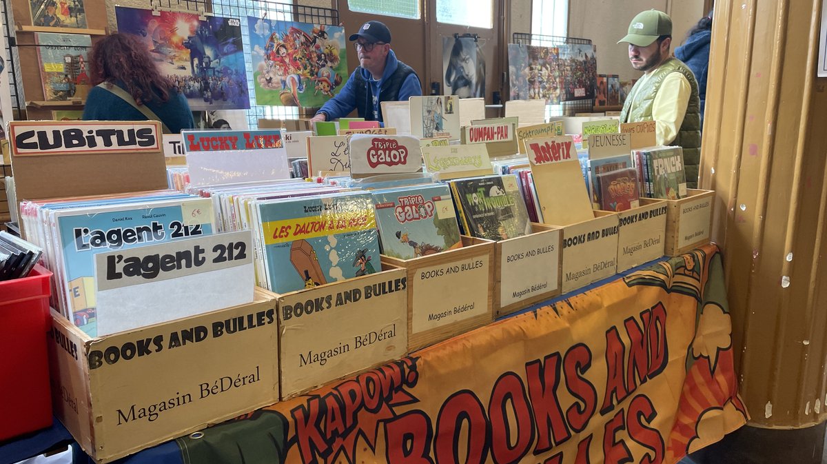 « Certains visiteurs arrivent avec une liste », explique Babet, l’une des bouquinistes présentes sur le festival. L’objectif pour beaucoup : dénicher le dernier « Astérix » qui manque à leur collection. Pour certains, le projet est plus ambitieux. Ils cherchent la perle rare, farfouillant dans les différents bacs, la tête baissée. « C’est un moment de partage », raconte Babet, heureuse de conseiller ses clients sur la prochaine bande dessinée à ajouter à leur pile à lire. Babet et Alain, représentant « Books and bulles », sont présent au festival pour la cinquième année consécutive.