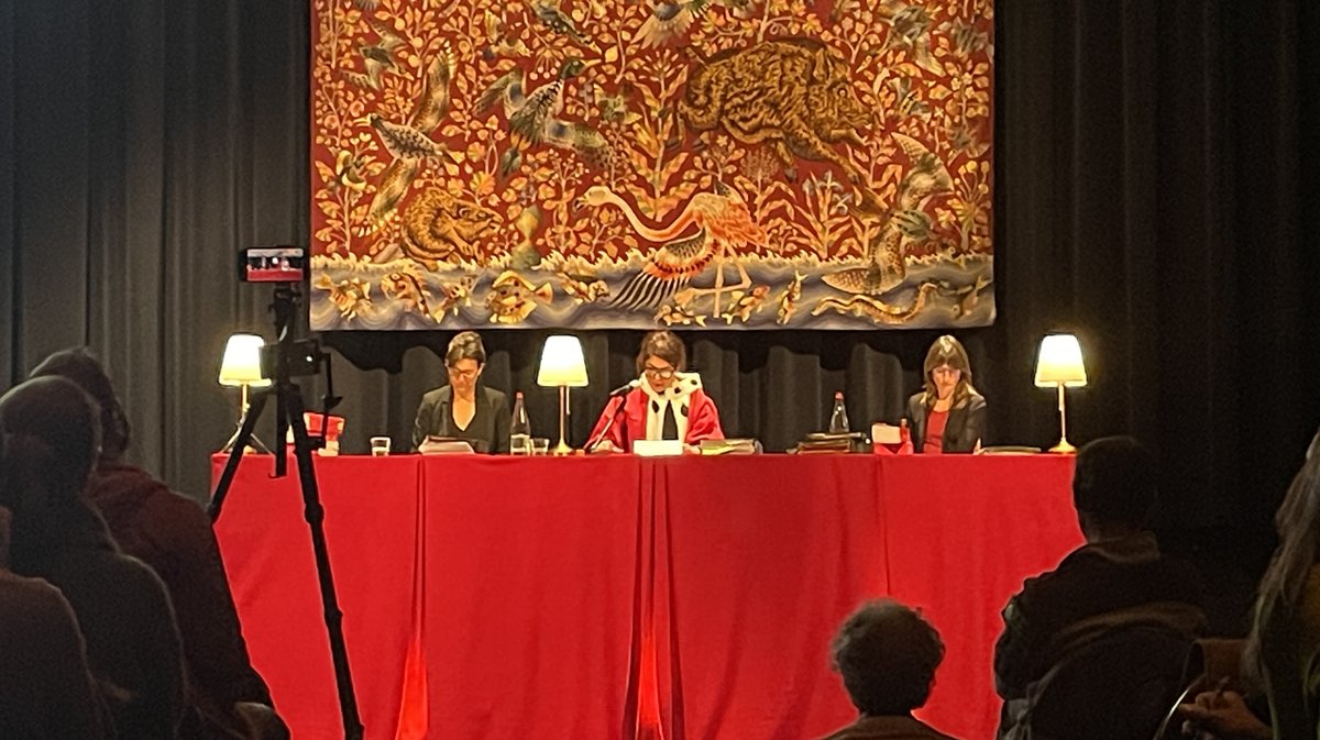 « La Camargue assigne à comparaître la salinisation », lance Sarah Doraghi, journaliste, comédienne et auteure franco-iranienne. À l’occasion de cette enquête-spectacle, elle incarne la présidente de l’audience, vêtue de sa robe rouge de juge de la cour d’assises. C’est dans la grande salle Mistral, au palais des congrès d'Arles, que le spectacle s’est joué, devant des centaines de personnes. De quoi remplir la quasi-intégralité des sièges disponibles. « N’hésitez pas à vous serrer, on fait salle comble cet après-midi », annonce Raphaël Mathevet, directeur de recherche au CNRS (Centre national de recherches scientifiques).