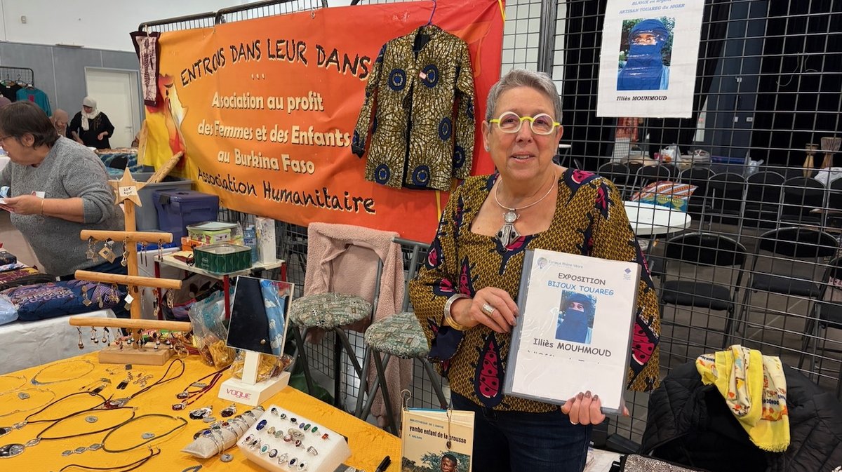 Au marché, Nadine Baternel tient deux stands : celui de l’association basée à Chusclan Entrons dans leur danse, et celui des bijoux du touareg nigérien Illies Mouhmoud. L’association d’abord : « Nous faisons des micro-crédits pour les femmes du Burkina-Faso, nous prêtons 70 euros par femme pour démarrer ou redémarrer une activité de maraîchage, et au bout de six à huit mois, elles nous remboursent grâce au produit de leurs ventes », présente-t-elle. L’association finance ses activités en revendant de l’artisanat burkinabé et sur le marché avec une tombola qui permet de nourrir des enfants défavorisés. Elle proposera aussi un marché d’artisanat d’avant Noël le dimanche 16 novembre de 10h à 18h à la salle Louis-Chinieu de Chusclan.