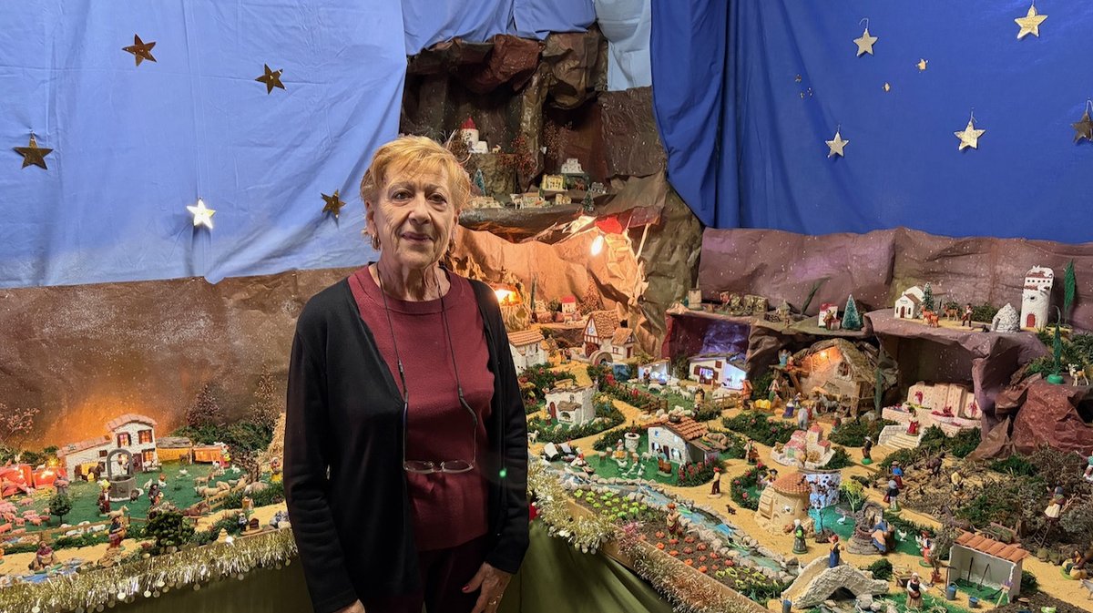 C’est ici que la propriétaire des lieux, Annie Bosch, réalise chaque année sa crèche. Elle fait ça « depuis quinze ans », précise-t-elle, au départ dans son salon puis, au fil des ans et d’une taille de crèche en croissance, dans son garage.