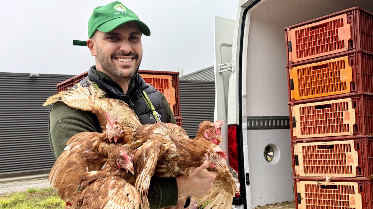 Joindre l'utile à l'agréable. C'est la mission de Thomas Dano. Mardi 27 janvier après-midi, pendant une heure et demie, le gérant de Poule pour tous, basée à Nantes, et qui compte 9 salariés, s'est activé, pour vendre 285 poules, venues d'Agen, de 18 mois. À 7 euros l'unité, elles sont parties comme des petits pains, dans les bras des acquéreurs, ayant flairé la bonne affaire.