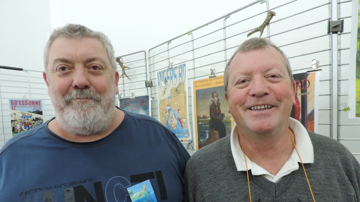 Dans la pièce à côté Fernand Louis et son frère François partagent une autre passion, celle des affiches des festival BD français qu'il exposent. "L'idée nous est venue du fait qu'une affiche constitue souvent une œuvre originale magnifique qui n'a pourtant qu'une durée de vie limitée à une ou deux semaines avant de tomber dans les oubliettes" commentent-ils. La difficulté c'est que depuis Angoulême en 1974 il y a eu plus de 4500 affiches créées et que les droits reviennent au auteurs. Certaines ont été détruites ou perdues. "Heureusement un collectionneur parisien, Jean Claude Slagmulder et venu abonder nos recherches. Nous aimerions pourvoir publier tout cela un jour sur un site".