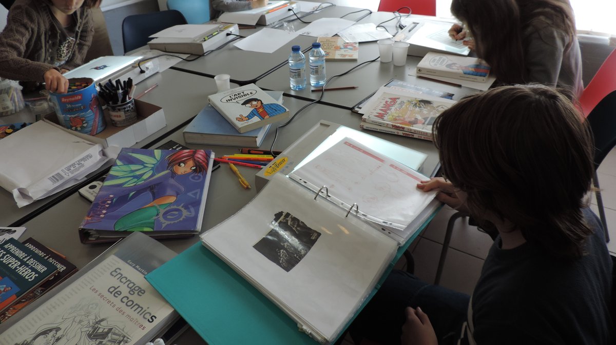Un peu plus loin les enfants dessinent en atelier, sous les conseils de Thibault Le Gonidec qui a ouvert à Alès l’atelier le Dojo de la BD, où il propose des cours de dessin manga, Bd, comics et la réalisation d'un fanzine. "C'est vrai que les enfants lisent beaucoup de mangas aujourd'hui mais moi je suis plutôt agréablement surpris. Quand on voit l'attrait des jeux vidéos et de la TV, c'est presque incroyable qu'il y ait encore tant de BD lues et que cela intéresse encore les jeunes..." "Et puis c'est complètement magique, de penser que l'on peut inventer tout un univers, avec très peu de moyens ; un crayon et une gomme y suffisent ! A voir aussi les planches du traditionnel Concours BD sur le thème “Lâchez la Bête !!!” exposées tous le week-end.