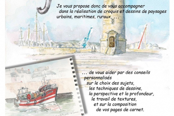 Je vous propose un stage (adultes et enfants accompagnés ) pour apprendre à dessiner en extérieur, en mode "carnet de voyage". Conseils personnalisés et individuels, tous niveaux accueillis !