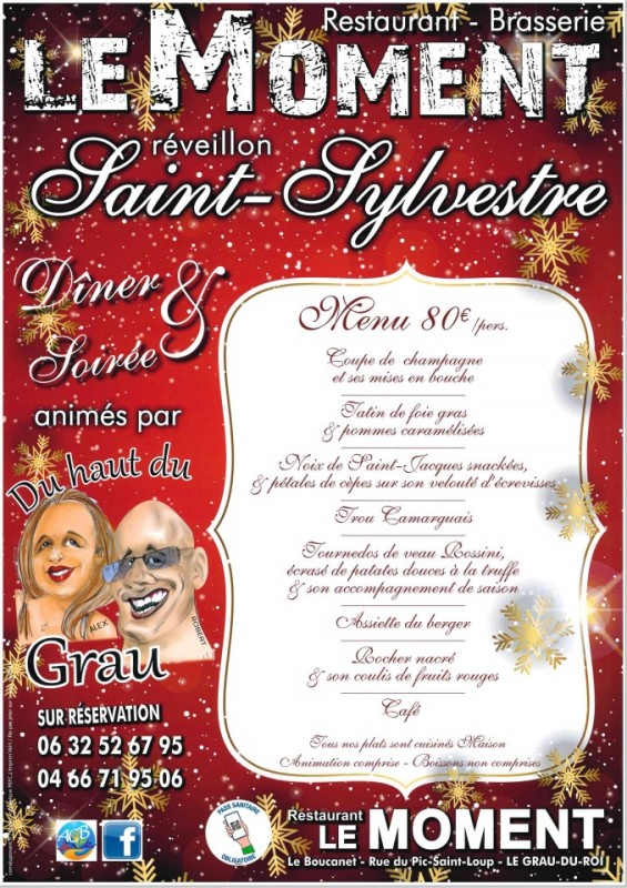 "Menu de Fêtes Restaurant Le Moment" - Vendredi 31 décembre - Le Grau du Roi