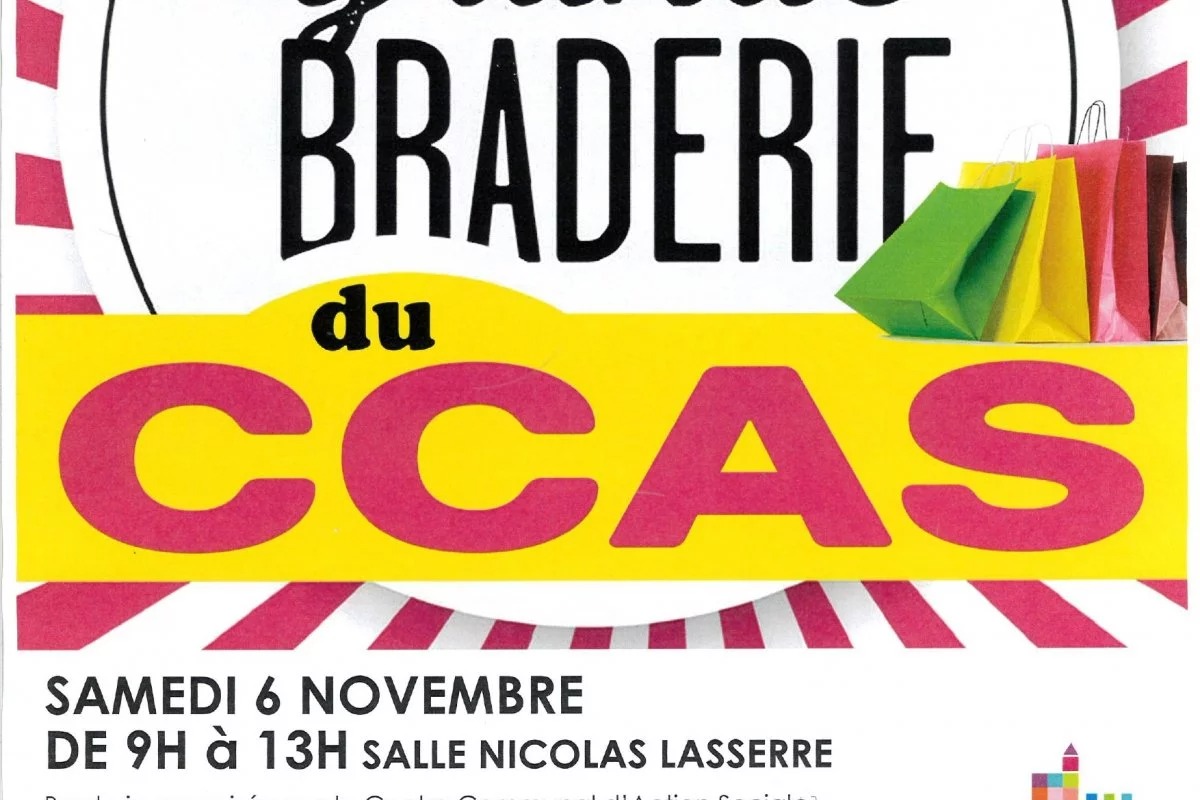 La grande braderie (vêtements, jeux, bricolage) organisée par le CCAS le samedi 6 novembre à la sale Nicolas Lasserre.