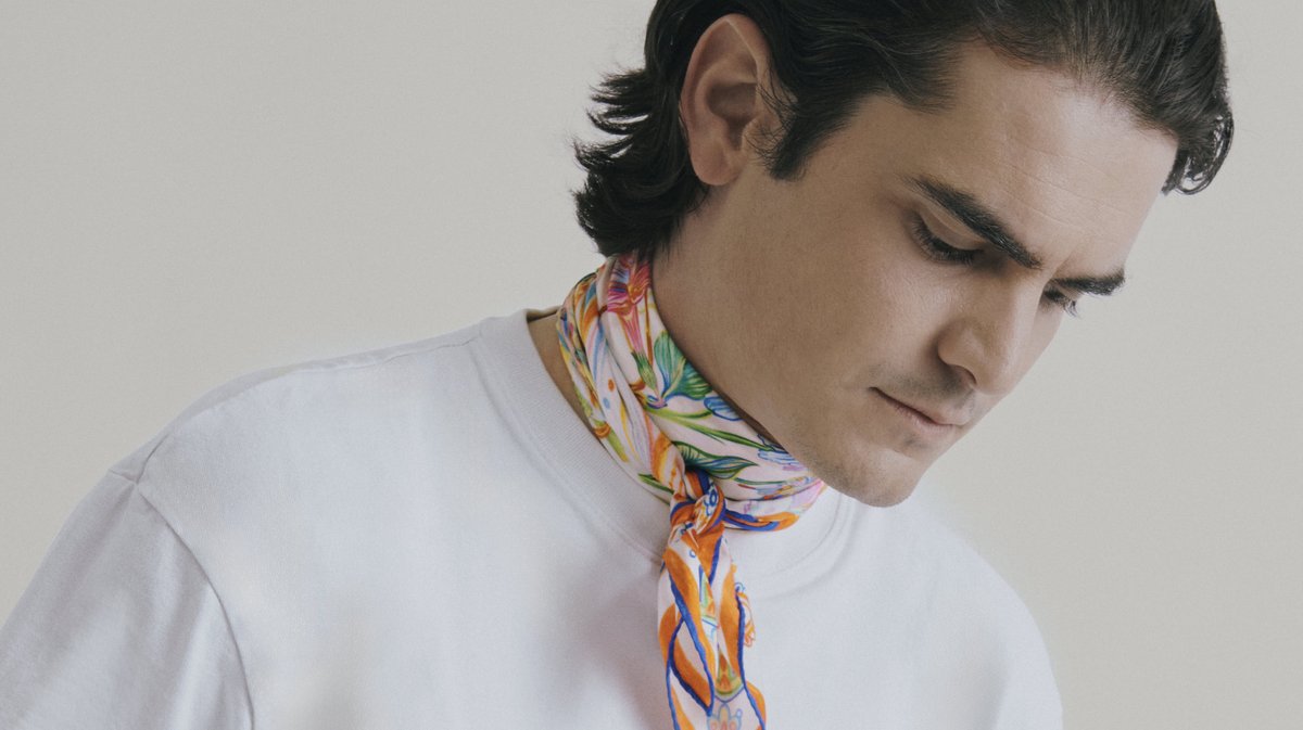 Aux quatre coins d'un carré autrement très végétal, les papillons d'Aline Zalko se parent de vives couleurs du sud, rouge orangé, bleu pastellisé, dans un cadre rouge sur fond blanc. Une belle réussite chromatique, moins chargée que de nombreux carrés, au final aussi légère que ce que promet le foulard composé de soie.