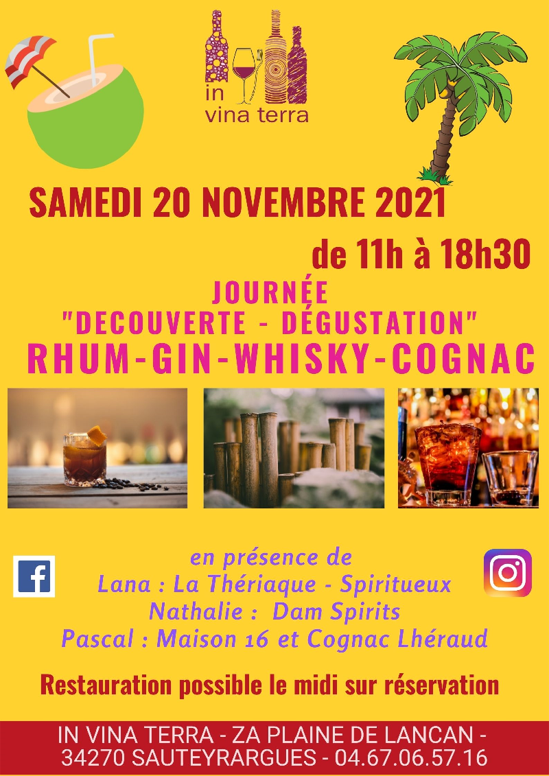 Journée Découverte – dégustation : Rhum – Gin- Whisky – Cognac » (avec modération)