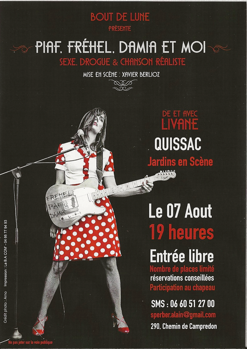 Spectacle au jardin avec « Liviane Révèle» - Samedi 7 août - 19h00 – Quissac