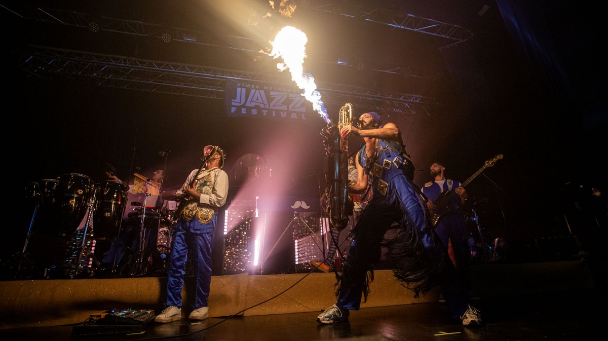 Hier soir, Stéphane Kochoyan, le plus zazou du festival, savourait le succès d’un concert encore complet du Nîmes Métropole Jazz Festival. Il a présenté Deluxe dans la graaaaande salle de Paloma archi-pleine, devant un public, particulièrement familial.