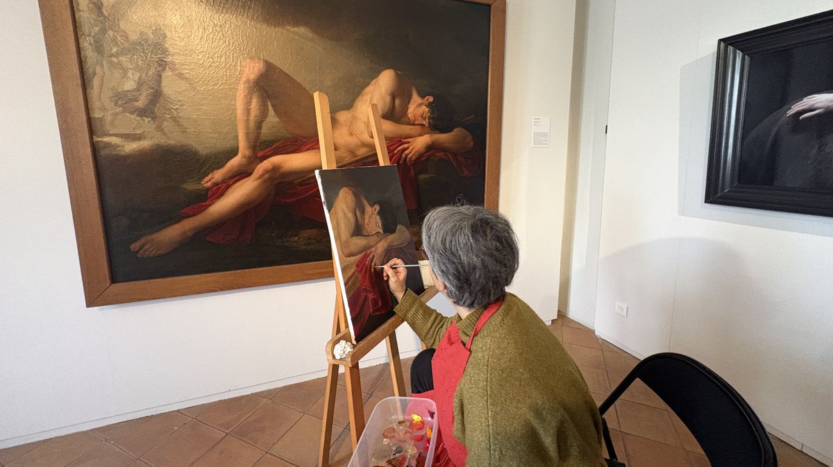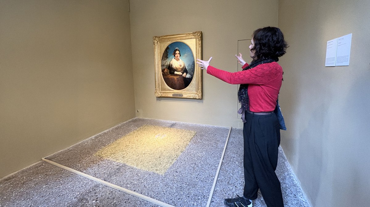 Christine Crozat se place au pied du Portrait d’Élisabeth Grange, fille de Jacques Réattu
