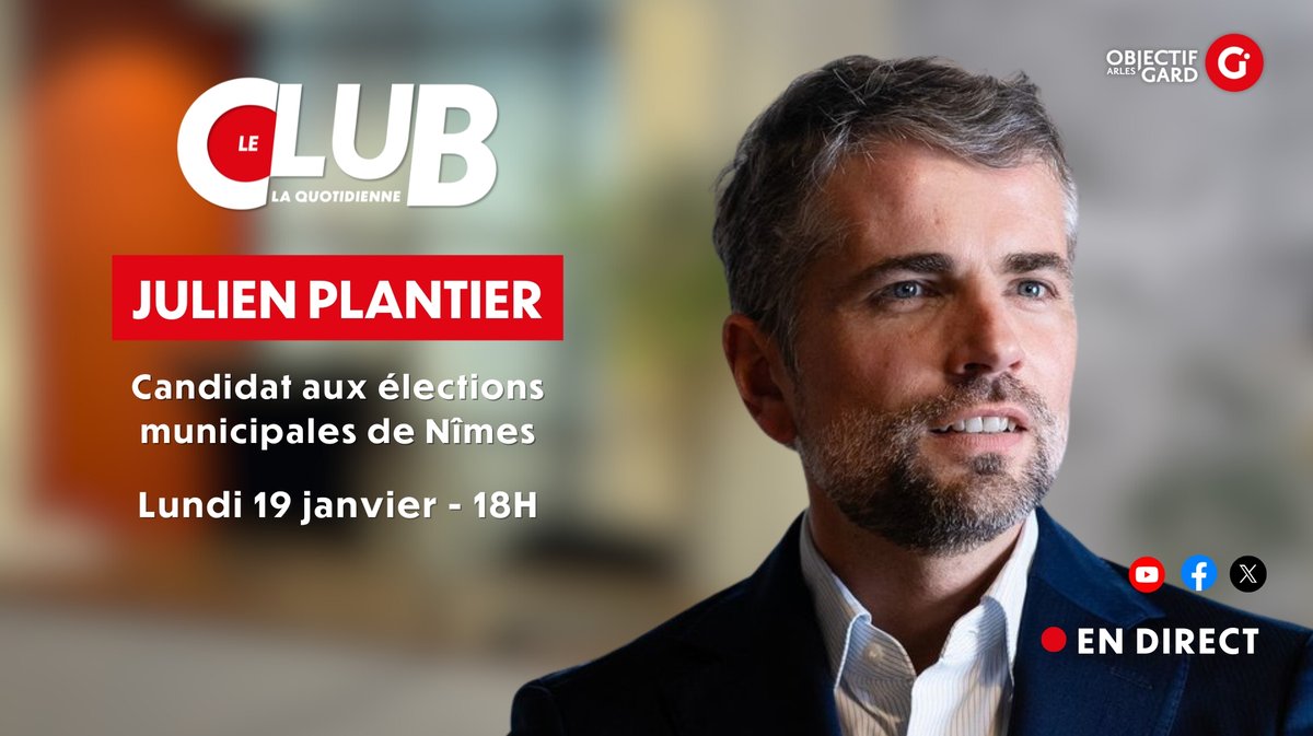 Pour son grand retour en version quotidienne, notre émission Le Club accueille Julien Plantier, ancien premier adjoint au maire de Nîmes et candidat aux municipales 2026. Rendez-vous à 18h sur Facebook, YouTube et X pour suivre l'émission en direct !