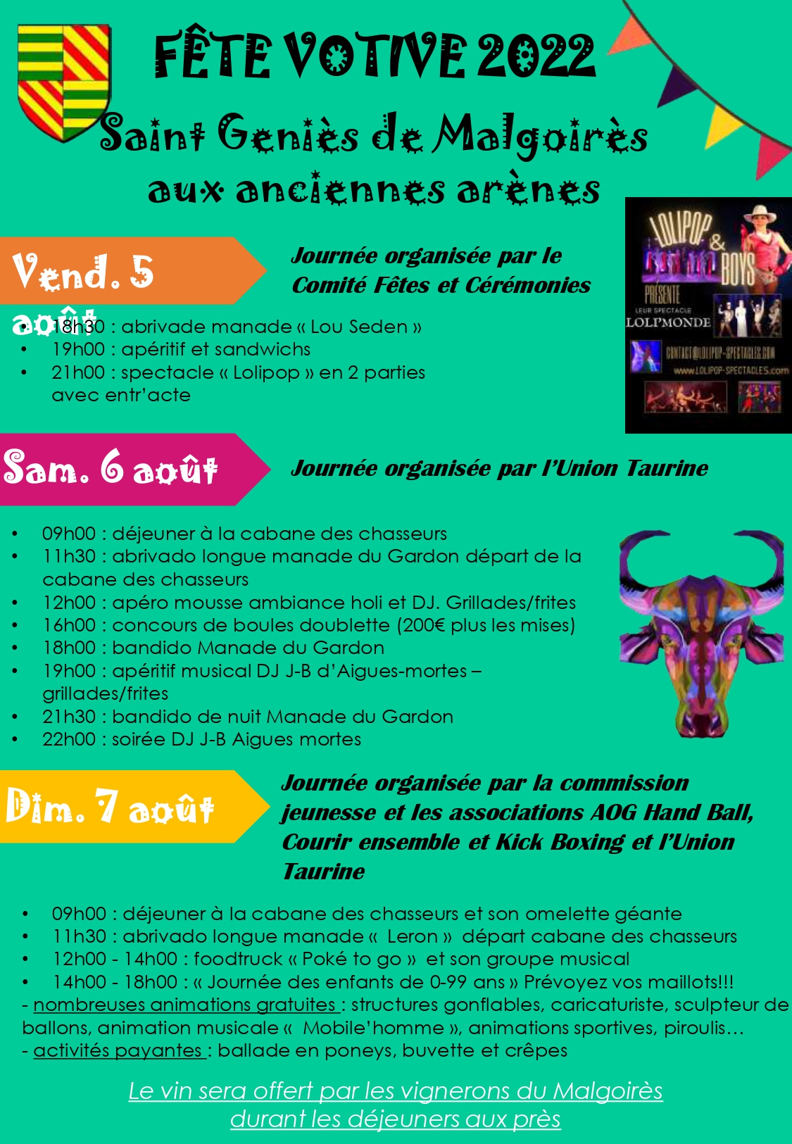 Pour ce week-end, découvrez le programme complet des fêtes votives :
