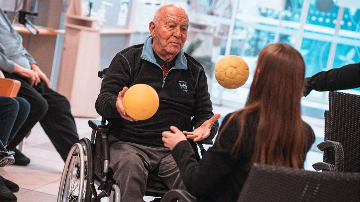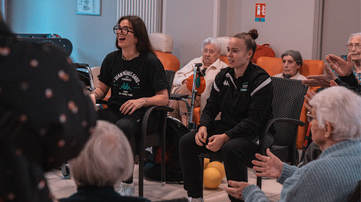 Depuis le mois d’octobre, l’USAM Nîmes Gard s’engage dans une démarche innovante et solidaire en nouant un partenariat inédit avec l’Ehpad La Camargue. Chaque jeudi, deux joueuses de l’équipe D2F de l’USAM Nîmes Gard Nîmoises, Zeïna Raymond-Harek et Noémie Artaud, se rendent au sein de la résidence pour proposer aux résidents un atelier de handball adapté, pensé pour répondre aux capacités et aux envies de chacun.
