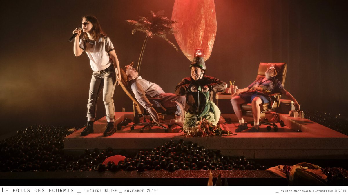 À travers la critique sociale et un humour aussi acide que salutaire, se glisse une forme d’espérance : l’empathie, la solidarité, la contagion du courage. Jeanne, par son aplomb, inspire le directeur. La libraire, espiègle, touche Olivier. Puis ils débattent fort avec leurs parents, et chacun, à son tour, insuffle un souffle d’espoir à l’autre. Réunir les petits, les fourmis, c’est devenir des poids lourds. Le texte de David Paquet mitraille l’actualité avec une précision chirurgicale, tandis que la mise en scène de Philippe Cyr s’amuse avec brio des absurdités du monde. Dans un bal théâtral de l’absurde mené tambour battant par quatre comédiens québécois tous épatants, se déploie une trêve vivifiante pour une jeunesse confrontée à des problèmes qu’elle n’a pas créés, mais qu’elle rêve de transformer. « Croire que je peux changer le monde me donne envie d’en faire partie », dit Jeanne. Et si c’était vrai ?