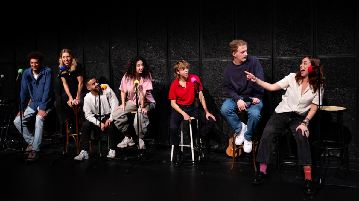 Dans le cadre de Talents Adami Théâtre, l’artiste a demandé aux candidats de lui envoyer une vidéo de deux minutes qui le fasse rire, un drôle de levier de sélection pour les huit jeunes gens qui habitent aujourd’hui le plateau. Comme dans le stand-up traditionnel, Mohamed El Khatib utilise la mise en scène réduite, pour que seuls les ressorts de la vitalité, de l’écriture ciselée et de la mise en péril donnent chair au spectacle. De l’enchaînement de solos, il compose peu à peu une partition chorale qui traverse l’histoire du stand-up, ses origines et son insolente habileté à prendre le pouls des faits de société. Phénomène éminemment contemporain, le stand-up serait-il la nouvelle plateforme des récits manquants ? Frais, intelligent et hilarant, un spectacle qui fait un bien fou !
