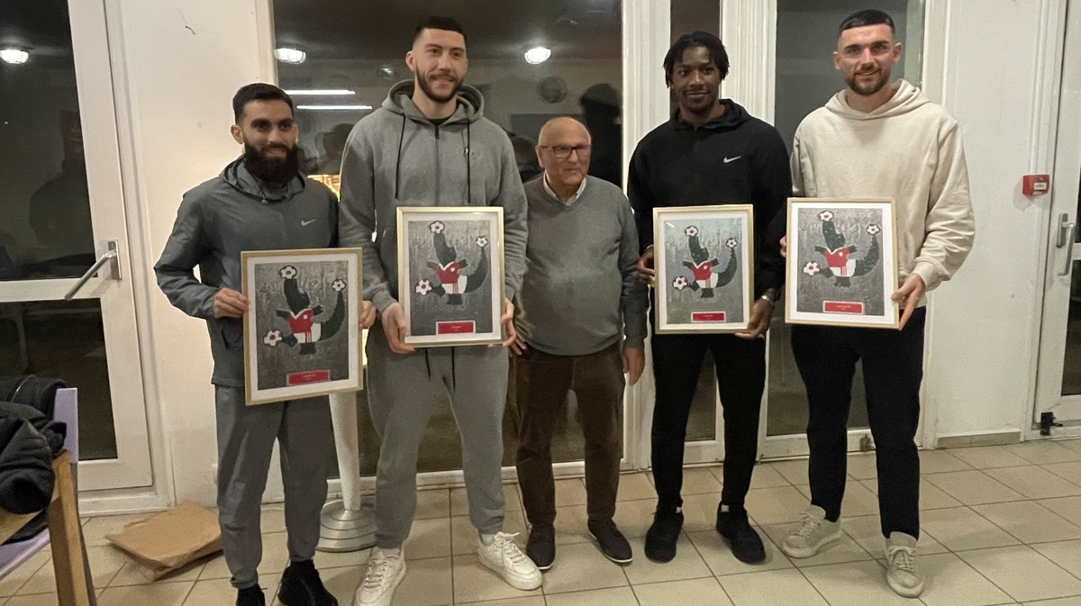 Des Crocos encadrés. Comme chaque année, au mois de janvier, le Club central des supporters de Nîmes Olympique organisait, hier, sa traditionnelle galette des rois. Lors de ce rendez-vous convivial, les fans du NO peuvent échanger avec les joueurs et le staff. C’est aussi l’occasion de récompenser des Crocodiles. Si les trophées distribués sont habituellement au nombre de deux, cette fois quatre Nîmois ont été honorés. Un joueur par ligne, le gardien de but Mickaël Salamone, le défenseur Ismaël Dramé, le milieu de terrain Oualid Orinel et l’attaquant Clément Depres ont reçu un cadre confectionné par Joël Mercier, le président du CCSNO. Le trophée représentait un crocodile jouant au football, équipé du maillot rouge. « Cela représente environ trois semaines de travail », précisait l’artiste. Clément Depres a à son tour pris la parole pour remercier les supporters : « On espère que nous irons au bout de ce que nous avons construit et vous faites partie de cette histoire ».