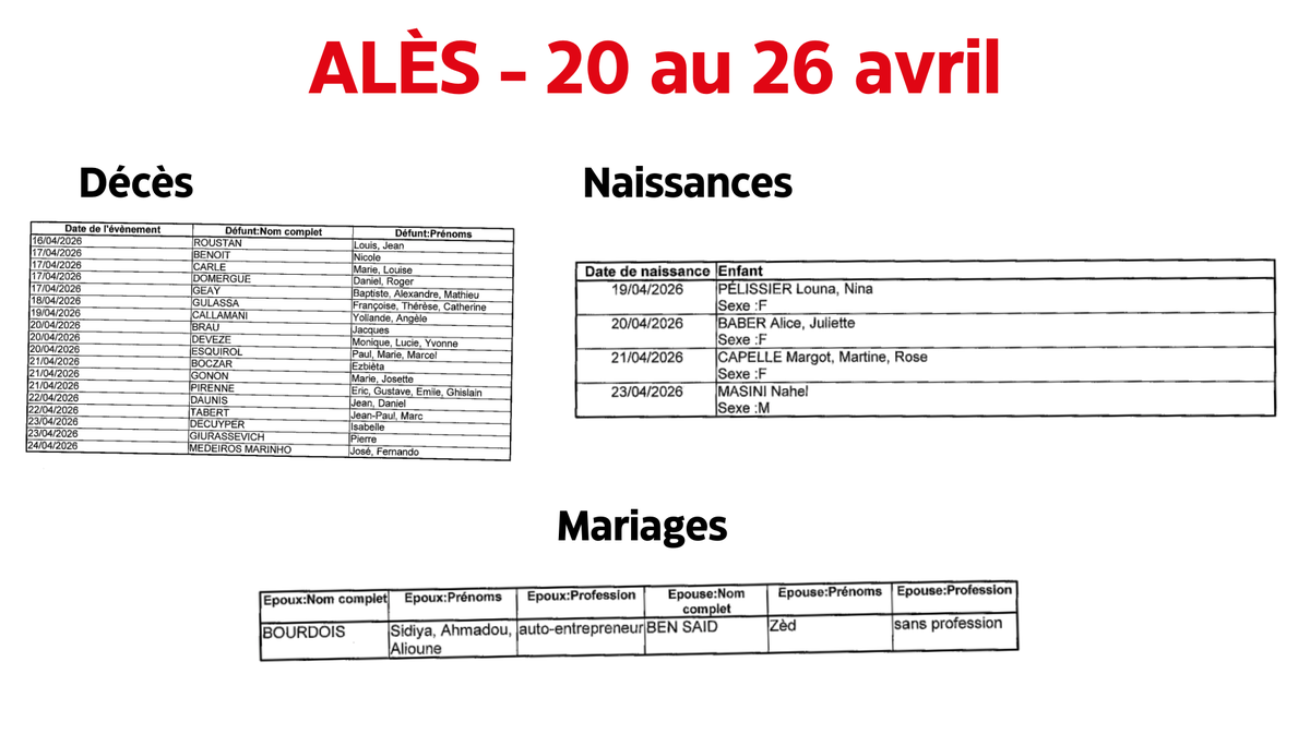 Alès : Naissances décès du 20 au 26 avril