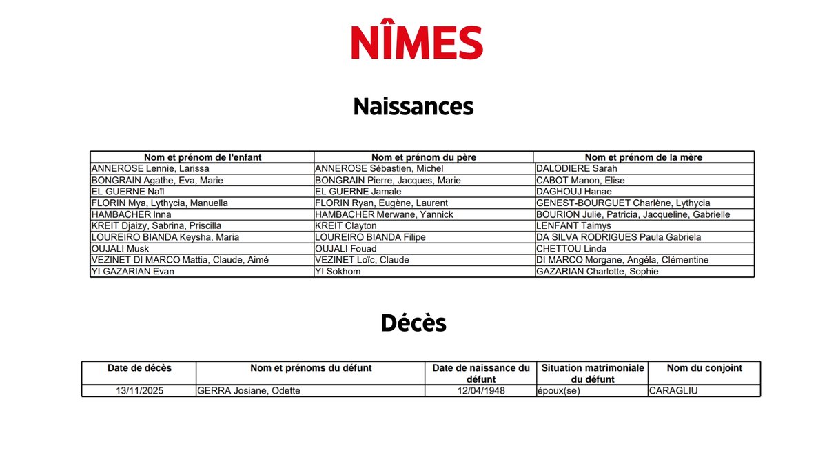 - Objectif GardTous les jours à 12h30, ne manquez pas l'état civil à Nîmes.