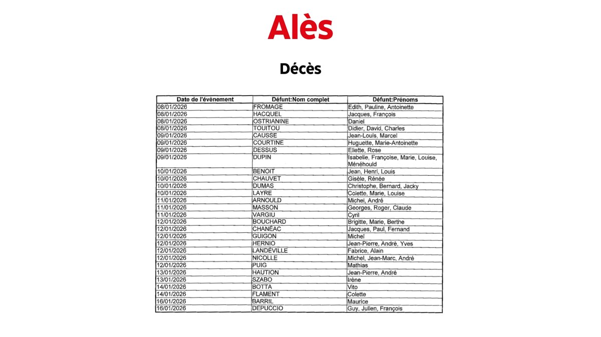 Alès : Naissances et décès du 10 au 18 janvier