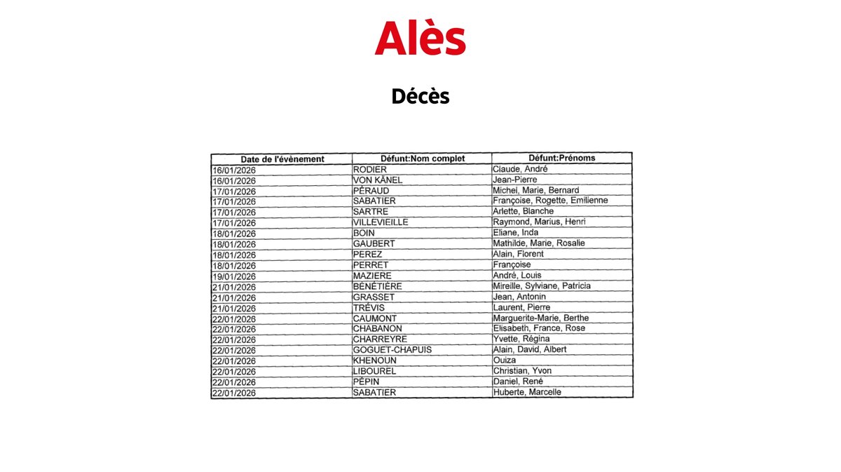 Alès : Naissances et décès du 19 au 25 janvier
