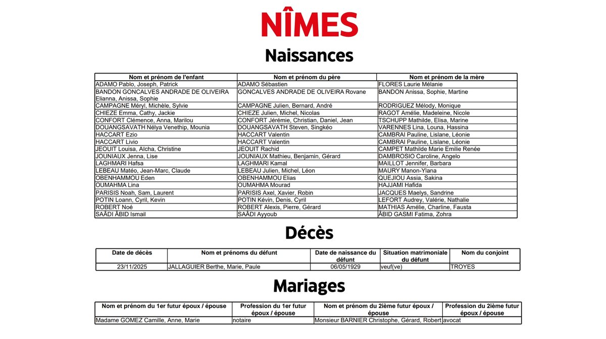 - Objectif GardTous les jours à 12h30, ne manquez pas l'état civil à Nîmes et à Alès.
