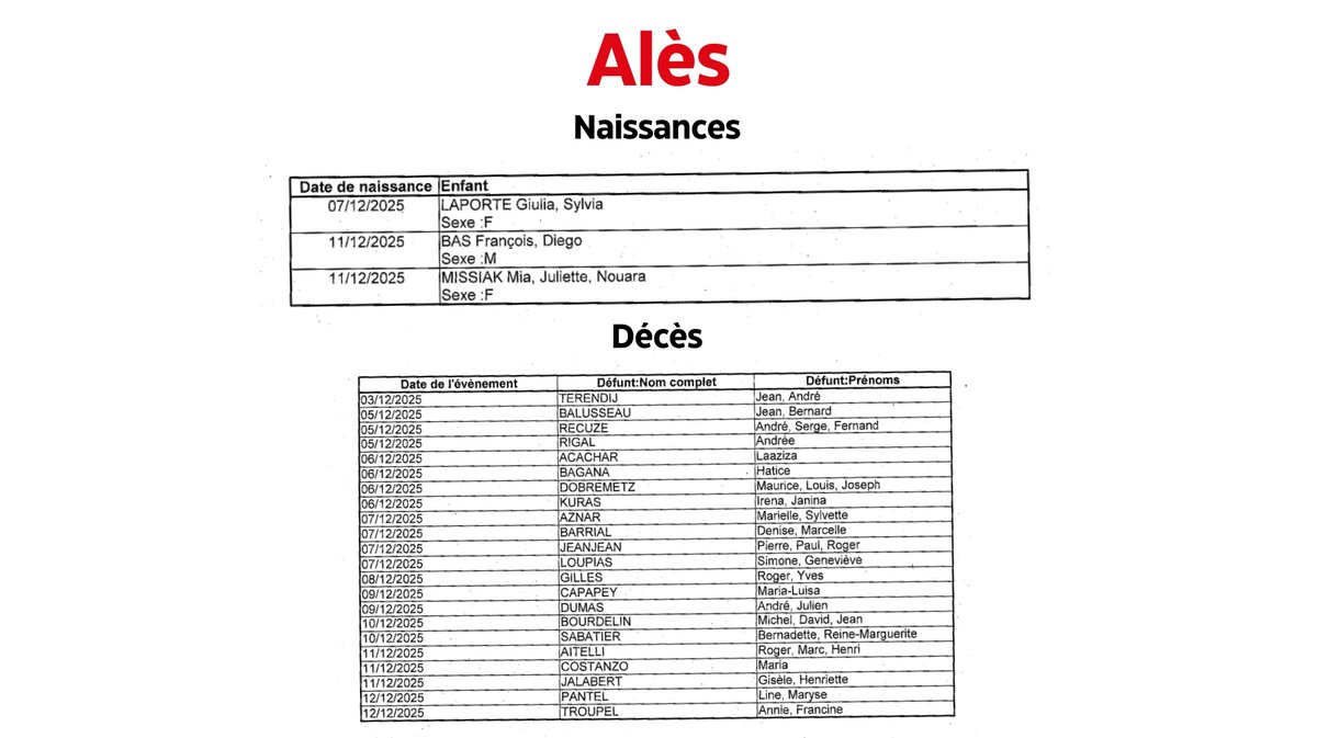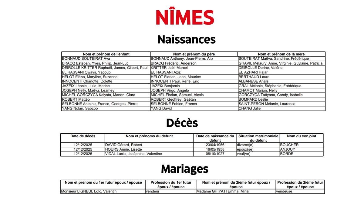 Nîmes : Naissances et décès du 13 au 15 décembre