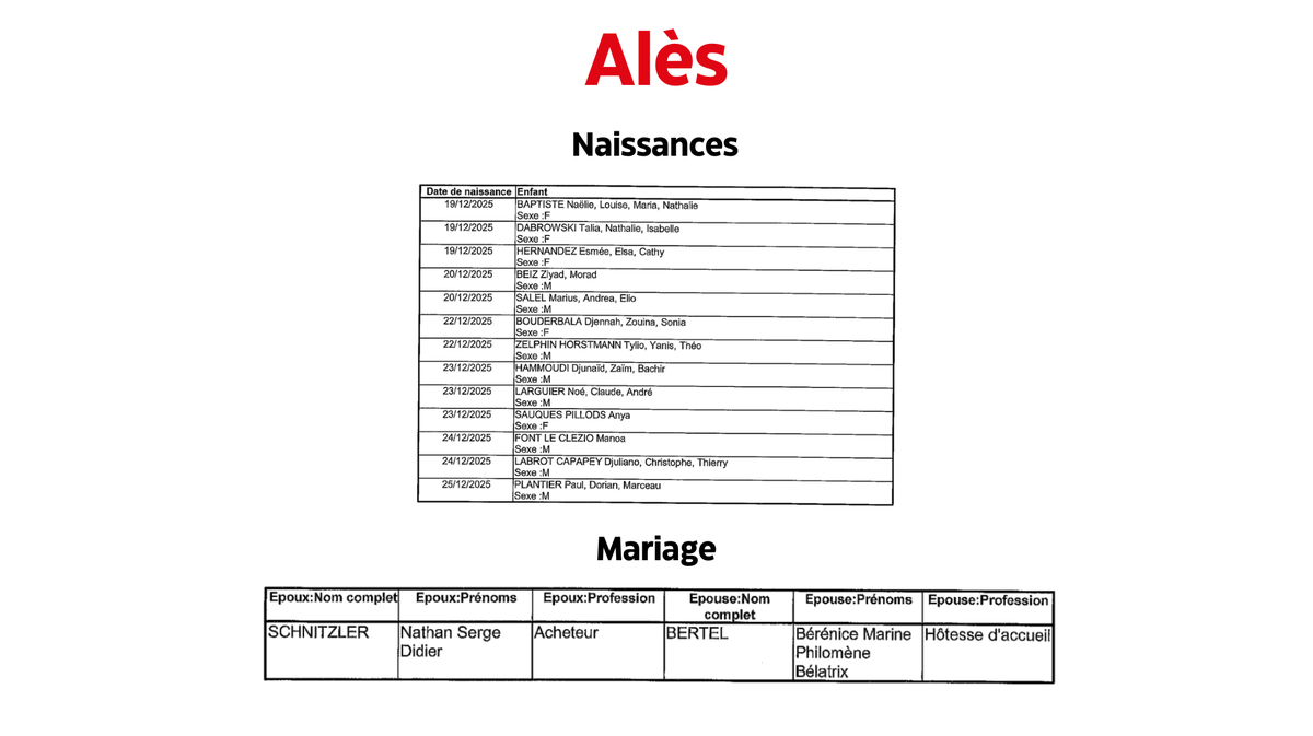 Alès : Naissances, mariage et décès du 22 au 28 décembre