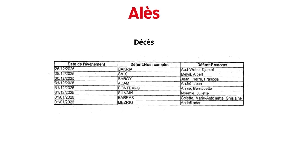 Alès : Naissances, mariage et décès du 29 décembre au 4 janvier