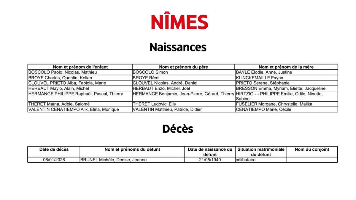 Nîmes : Naissances du 7 janvier