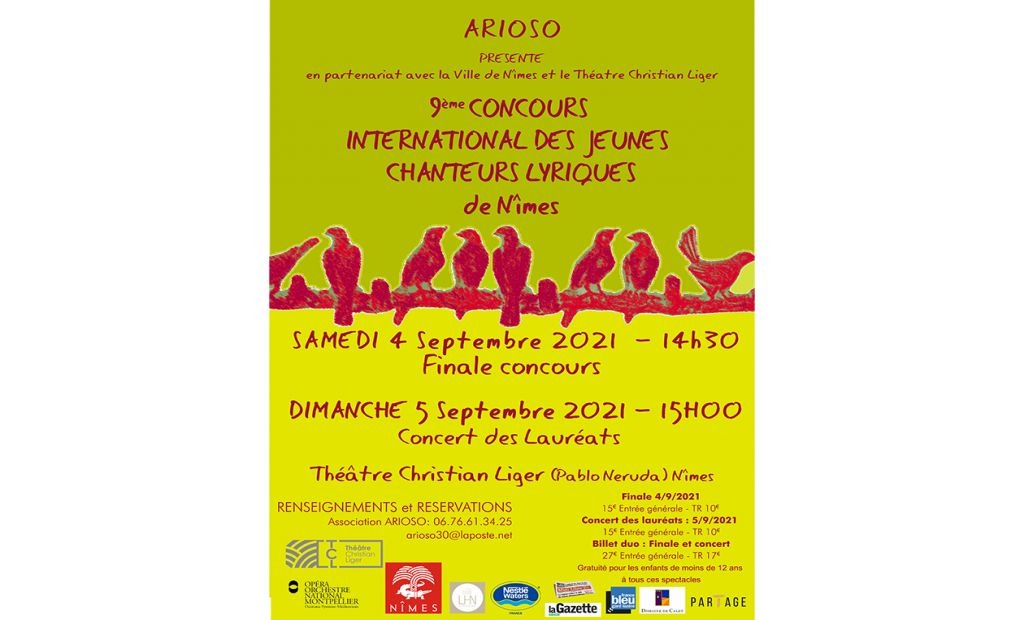 Arioso présente en partenariat avec la ville de Nîmes et le Théatre Christian Liger le 9ème concours international des jeunes chanteurs lyriques de Nîmes.