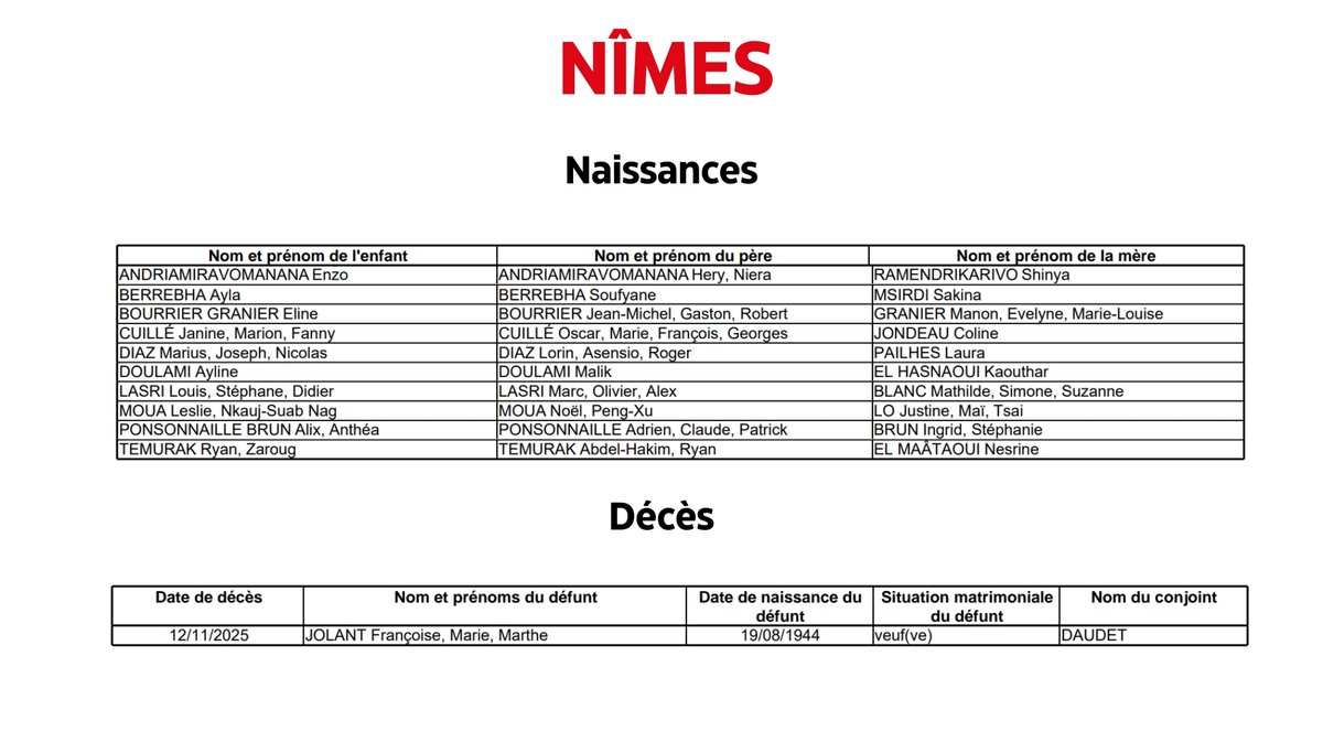 - Objectif GardTous les jours à 12h30, ne manquez pas l'état civil à Nîmes.