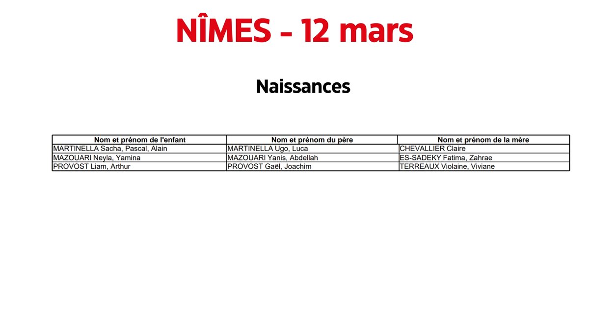 Nîmes : Naissances du 12 mars