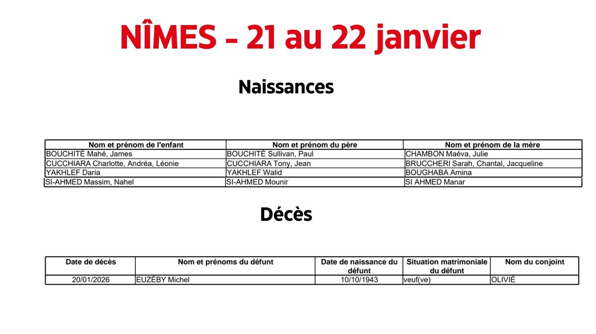 Découvrez les naissances et les décès du 20 janvier à Nîmes.