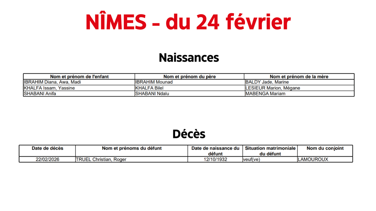 Découvrez les naissances et les décès récents à Nîmes.