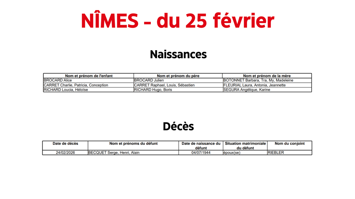 Nîmes : Naissances, décès du 26 février