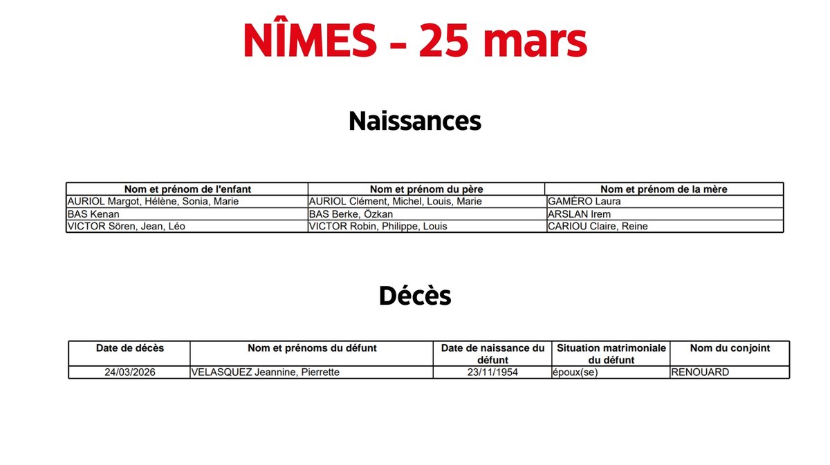 Nîmes : Naissances et décès du 25 mars