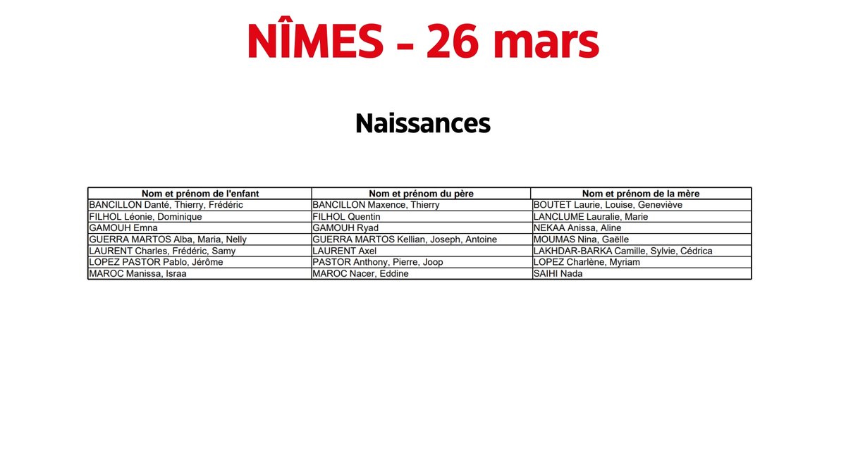 Nîmes : Naissances et décès du 26 mars