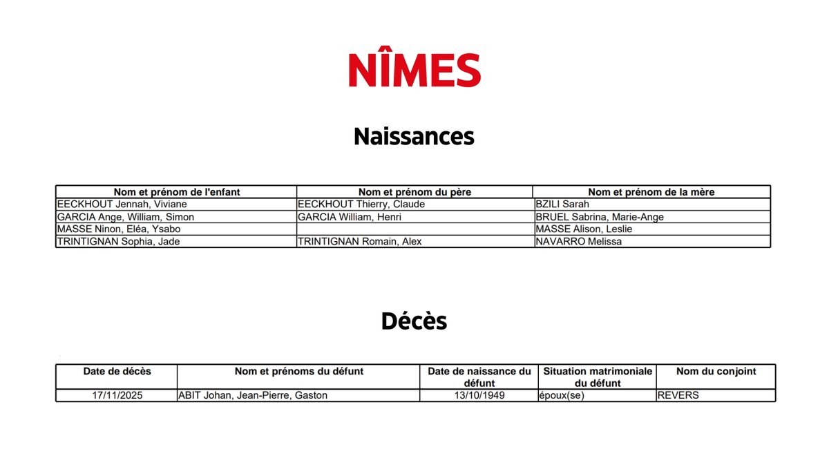 - Objectif GardTous les jours à 12h30, ne manquez pas l'état civil à Nîmes.