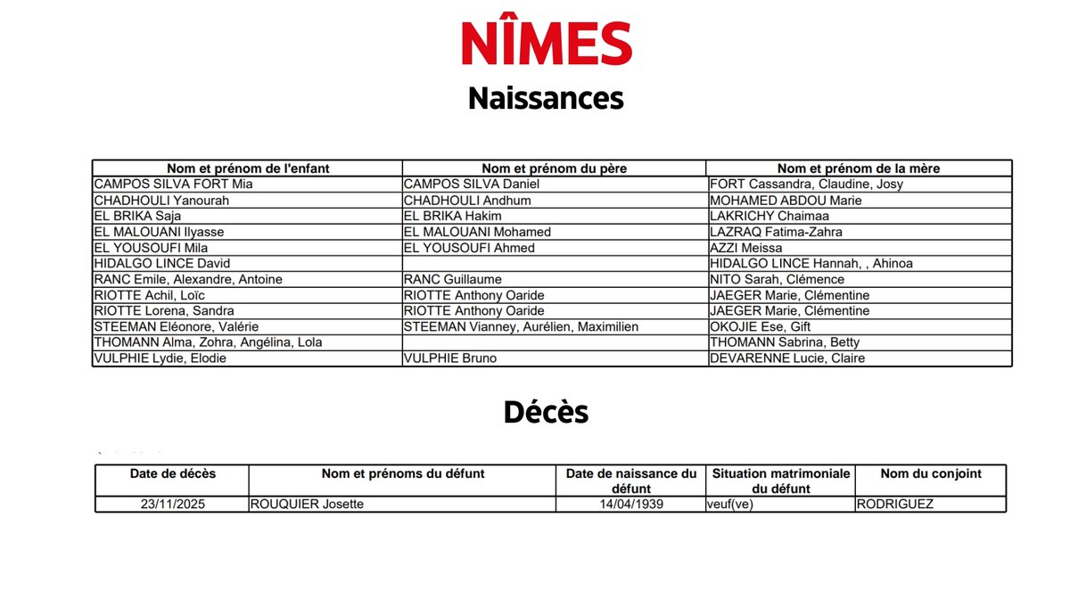 - Objectif GardTous les jours à 12h30, ne manquez pas l'état civil à Nîmes.