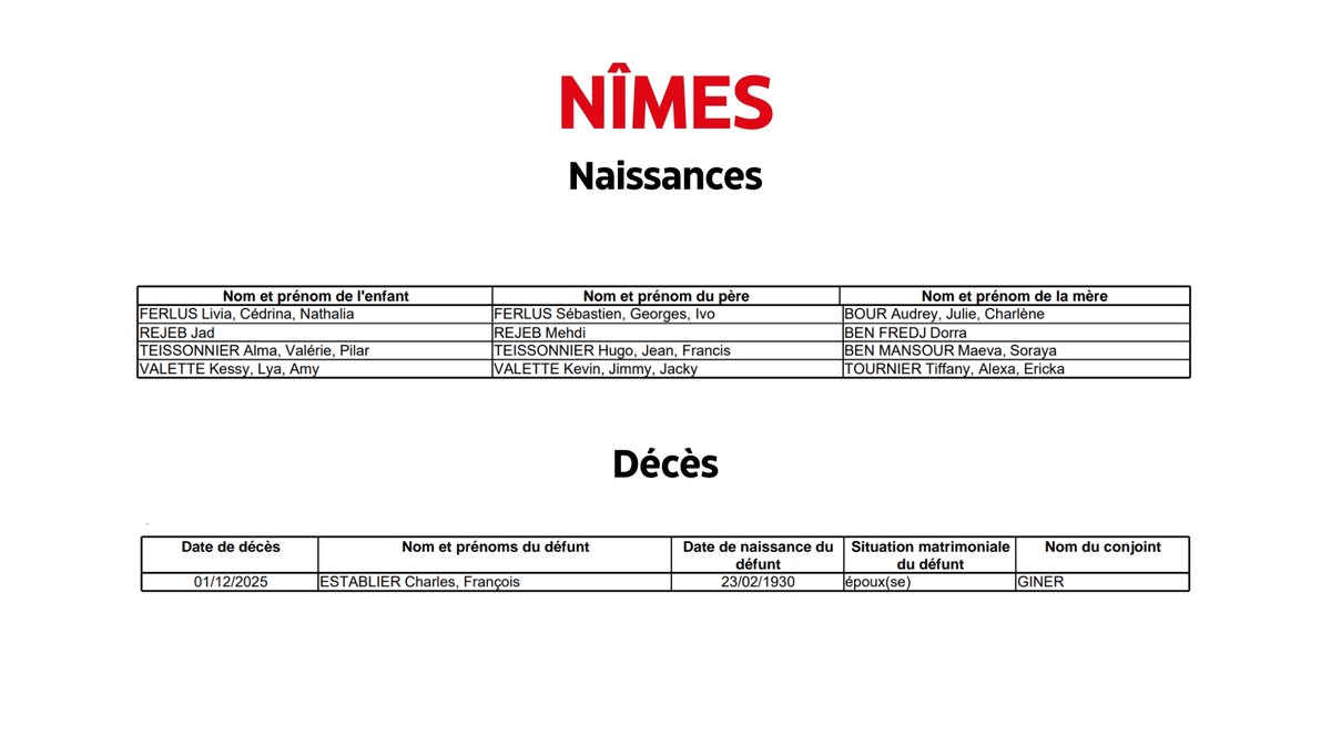 - Objectif GardTous les jours à 12h30, ne manquez pas l'état civil à Nîmes.