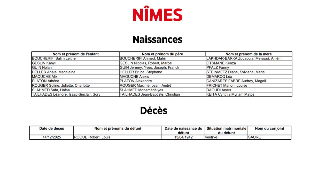 - Objectif GardTous les jours à 12h30, ne manquez pas l'état civil à Nîmes.