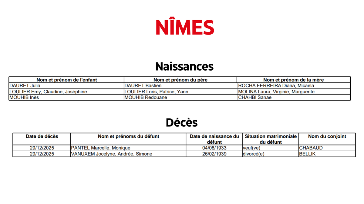 Nîmes : Naissances et décès du 30 décembre